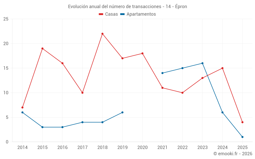 El precio mediano en las 17 transacciones de apartamentos de los últimos 24 meses en la comuna de Épron fue de 2 365 € por metro cuadrado para un valor patrimonial medio de 123 800 €. Durante este período el 60% de las transacciones estuvieron entre 1 397 y 3 312 € por metro cuadrado (del 2º al 8º decil).