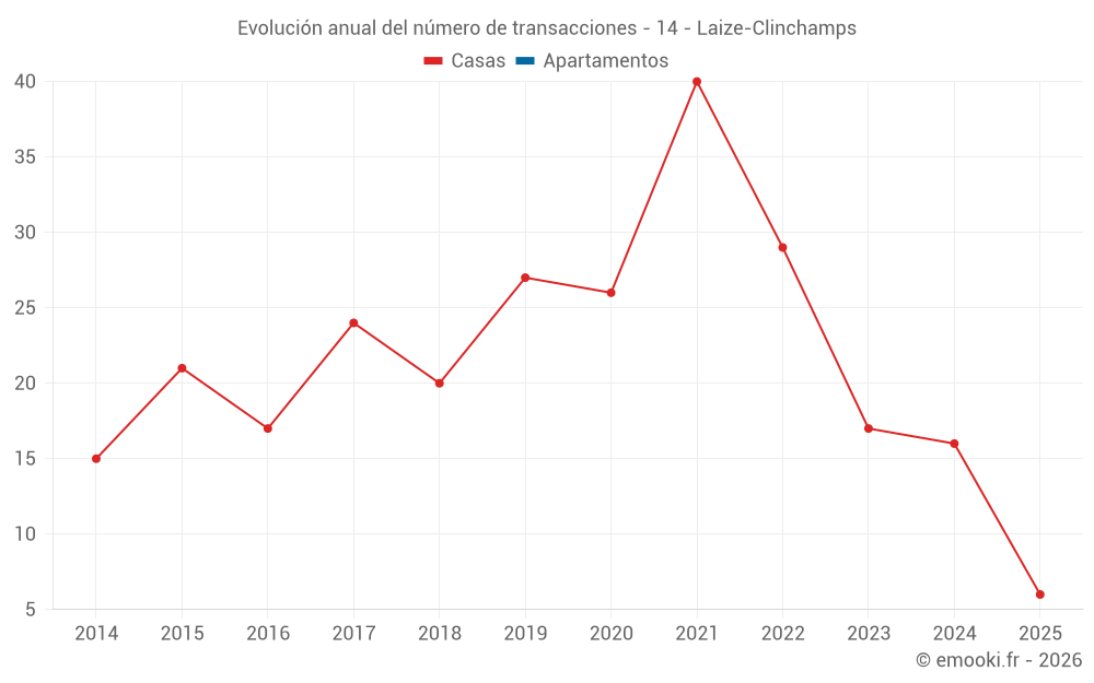 El precio mediano en las 33 transacciones de casas de los últimos 24 meses en la comuna de Laize-Clinchamps fue de 2 289 € por metro cuadrado para un valor patrimonial medio de 238 850 €. Durante este período el 60% de las transacciones estuvieron entre 1 515 y 2 591 € por metro cuadrado (del 2º al 8º decil).