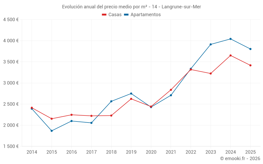 ¿Cuál es el precio por m2 de las casas en Langrune-sur-Mer?