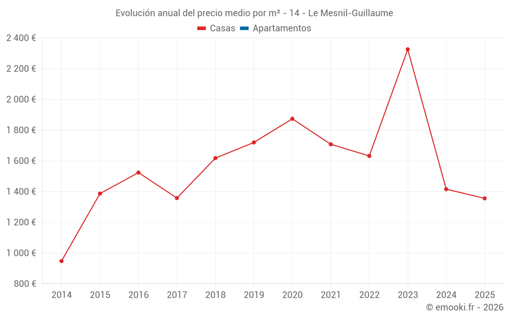¿Cuál es el precio por m2 de las casas en Le Mesnil-Guillaume?