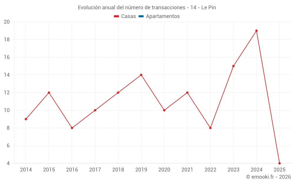 El precio mediano en las 33 transacciones de casas de los últimos 24 meses en la comuna de Le Pin fue de 2 030 € por metro cuadrado para un valor patrimonial medio de 232 000 €. Durante este período el 60% de las transacciones estuvieron entre 1 679 y 2 711 € por metro cuadrado (del 2º al 8º decil).