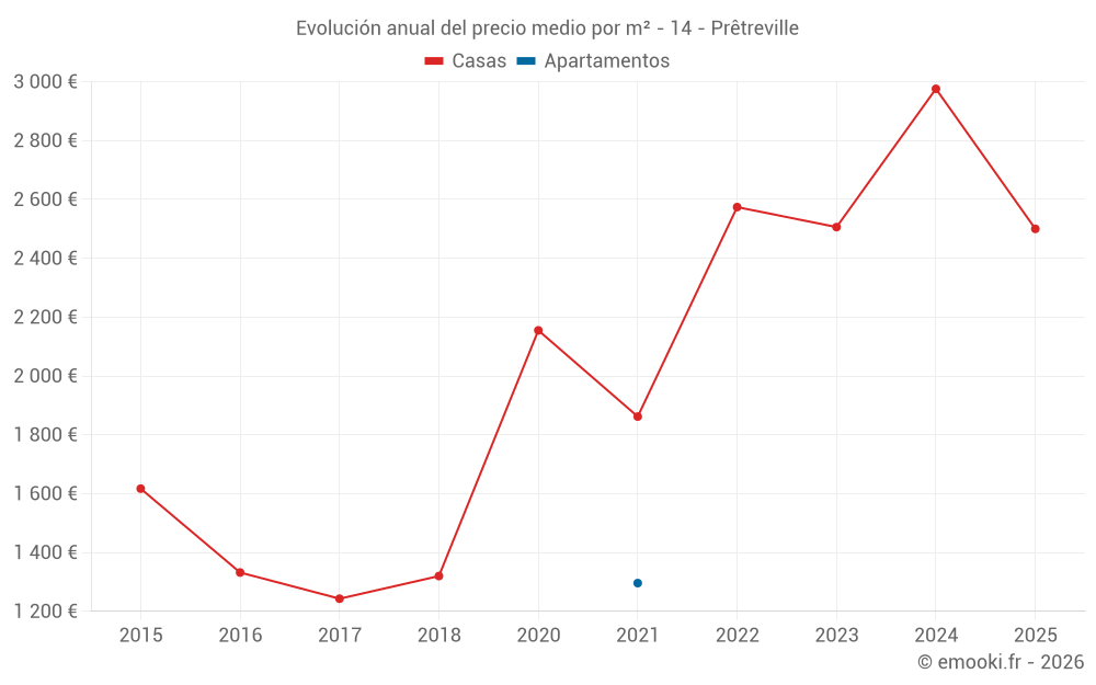 Evolución del precio medio por m² de las casas