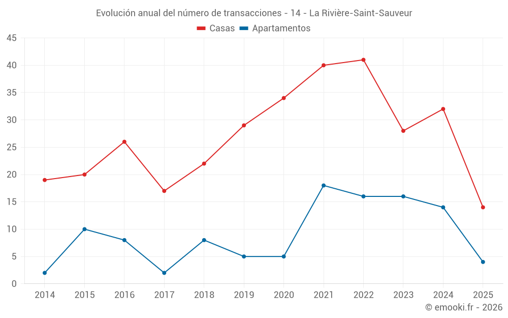 El precio mediano en las 25 transacciones de apartamentos de los últimos 24 meses en la comuna de La Rivière-Saint-Sauveur fue de 2 488 € por metro cuadrado para un valor patrimonial medio de 126 000 €. Durante este período el 60% de las transacciones estuvieron entre 2 257 y 2 943 € por metro cuadrado (del 2º al 8º decil).