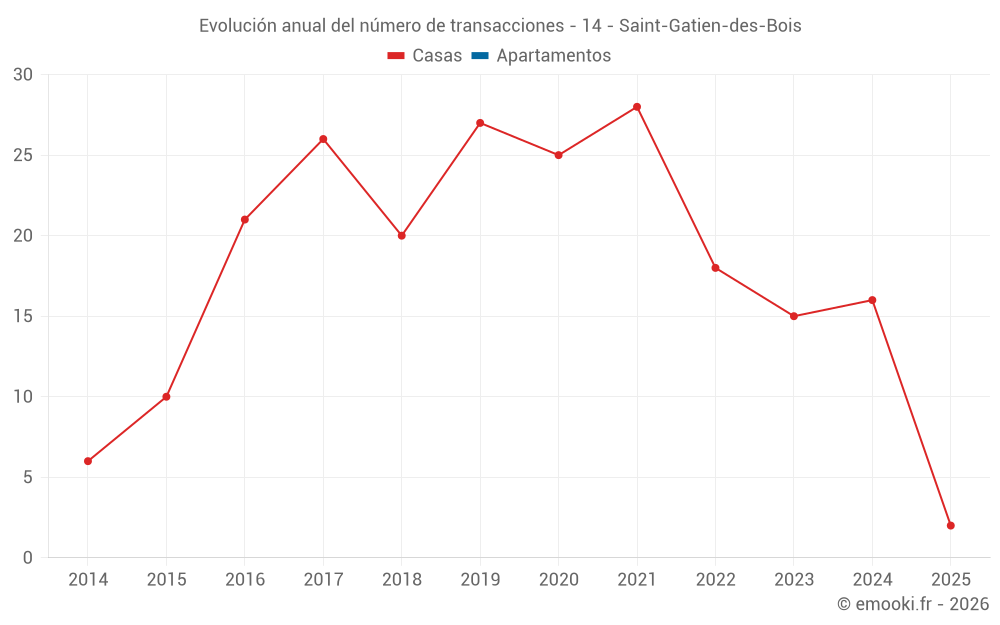 El precio mediano en las 24 transacciones de casas de los últimos 24 meses en la comuna de Saint-Gatien-des-Bois fue de 2 816 € por metro cuadrado para un valor patrimonial medio de 242 000 €. Durante este período el 60% de las transacciones estuvieron entre 1 980 y 3 700 € por metro cuadrado (del 2º al 8º decil).