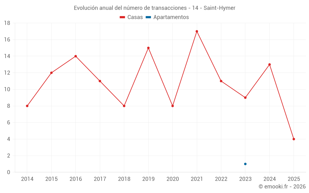 El precio mediano en las 22 transacciones de casas de los últimos 24 meses en la comuna de Saint-Hymer fue de 3 084 € por metro cuadrado para un valor patrimonial medio de 470 620 €. Durante este período el 60% de las transacciones estuvieron entre 2 612 y 5 164 € por metro cuadrado (del 2º al 8º decil).