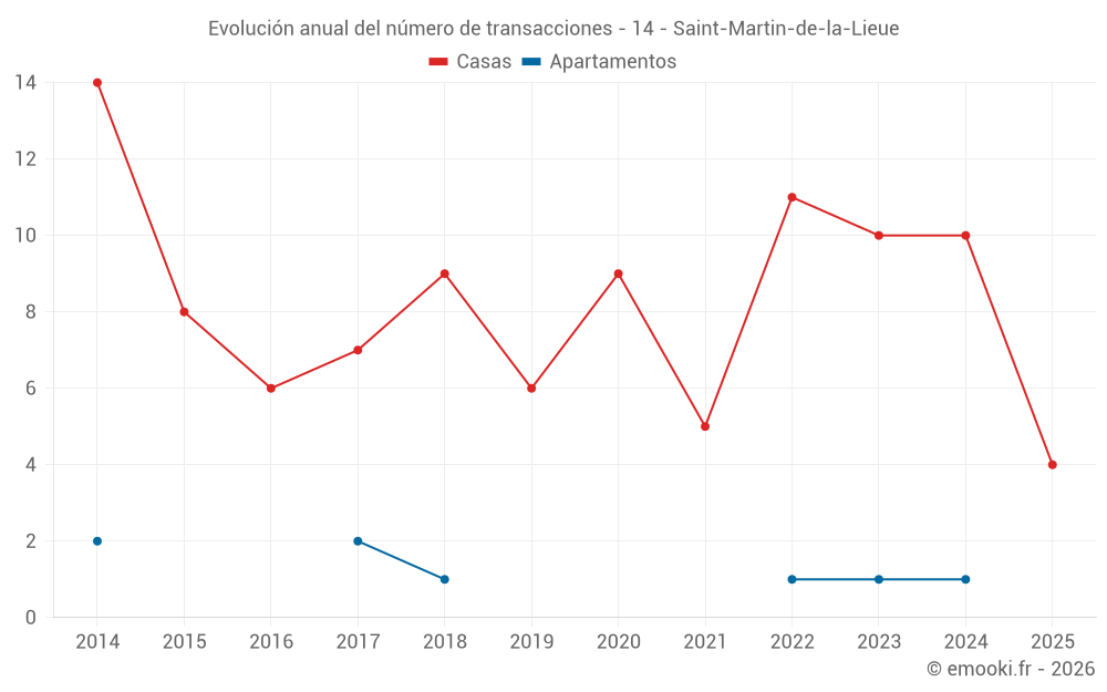 El precio mediano en las 21 transacciones de casas de los últimos 24 meses en la comuna de Saint-Martin-de-la-Lieue fue de 2 094 € por metro cuadrado para un valor patrimonial medio de 223 000 €. Durante este período el 60% de las transacciones estuvieron entre 1 798 y 2 738 € por metro cuadrado (del 2º al 8º decil).