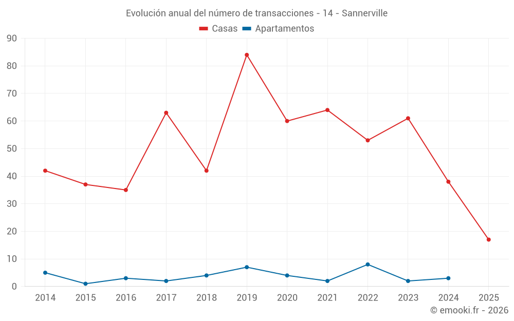 El precio mediano en las 46 transacciones de casas de los últimos 12 meses en la comuna de Sannerville fue de 2 374 € por metro cuadrado para un valor patrimonial medio de 220 000 €. Durante este período el 60% de las transacciones estuvieron entre 1 957 y 2 782 € por metro cuadrado (del 2º al 8º decil).