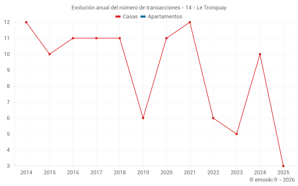 El precio mediano en las 15 transacciones de casas de los últimos 24 meses en la comuna de Le Tronquay fue de 1 825 € por metro cuadrado para un valor patrimonial medio de 190 000 €. Durante este período el 60% de las transacciones estuvieron entre 1 541 y 2 236 € por metro cuadrado (del 2º al 8º decil).