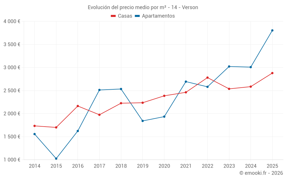 Mapa de precios de la vivienda en la comuna de Verson, elija una sección para ver las transacciones por parcela.