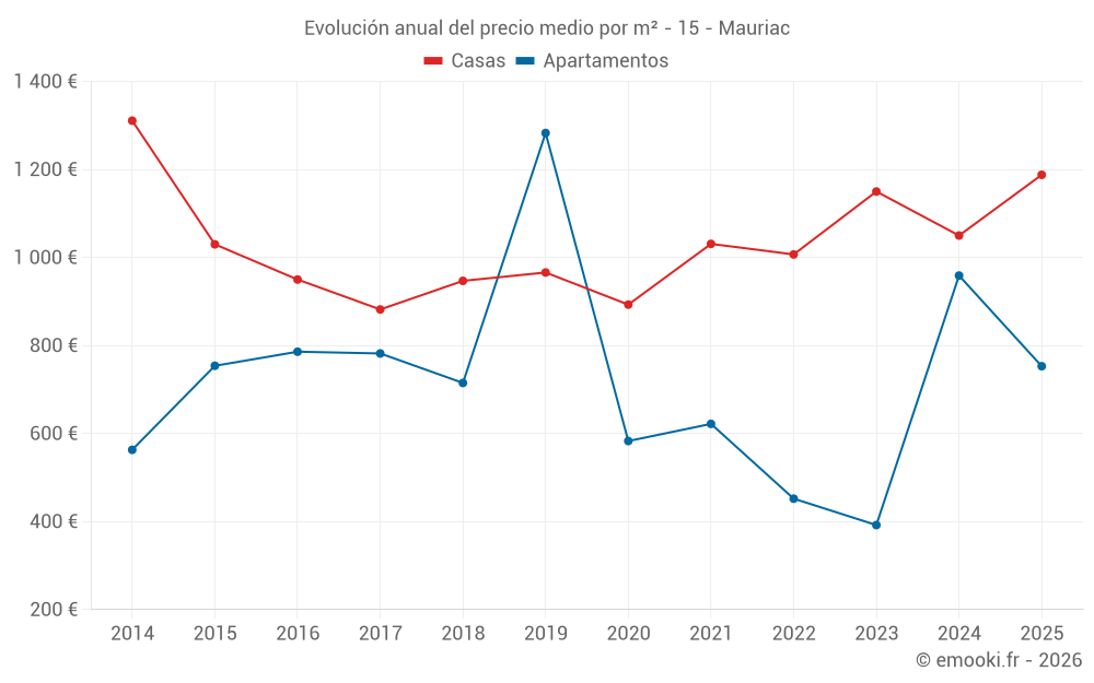 ¿Cuál es el precio por m2 de las casas en Mauriac?