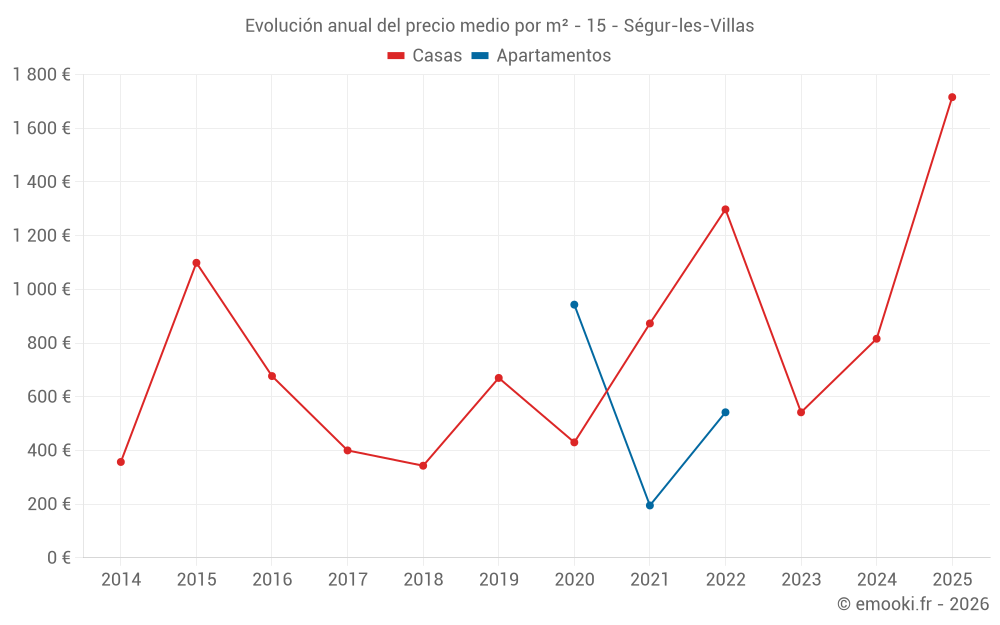 Evolución del precio medio por m² de las casas