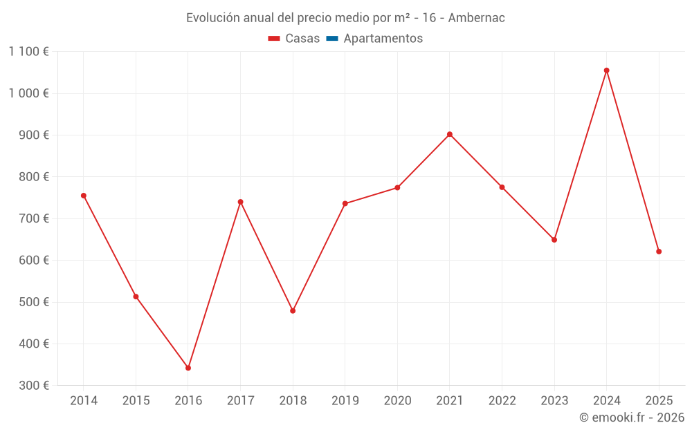 Evolución del precio medio por m² de las casas