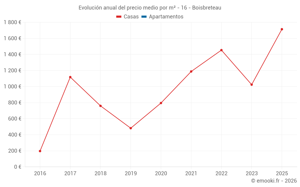 Mapa de precios de la vivienda en la comuna de Boisbreteau, elija una sección para ver las transacciones por parcela.