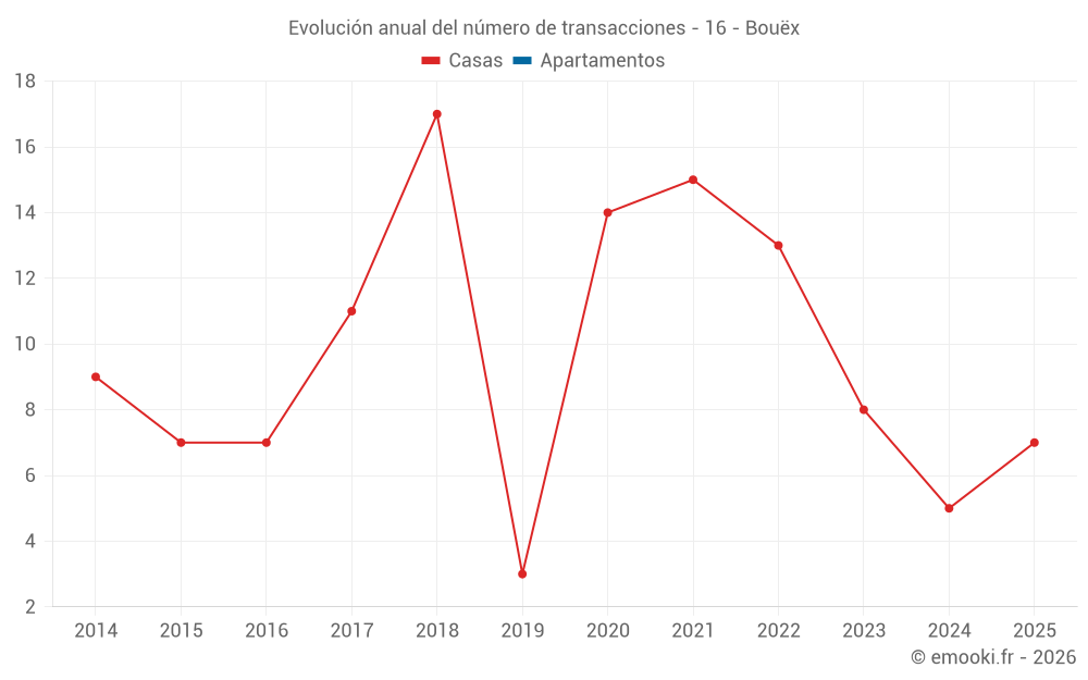 El precio mediano en las 16 transacciones de casas de los últimos 24 meses en la comuna de Bouëx fue de 1 511 € por metro cuadrado para un valor patrimonial medio de 157 000 €. Durante este período el 60% de las transacciones estuvieron entre 1 054 y 1 863 € por metro cuadrado (del 2º al 8º decil).
