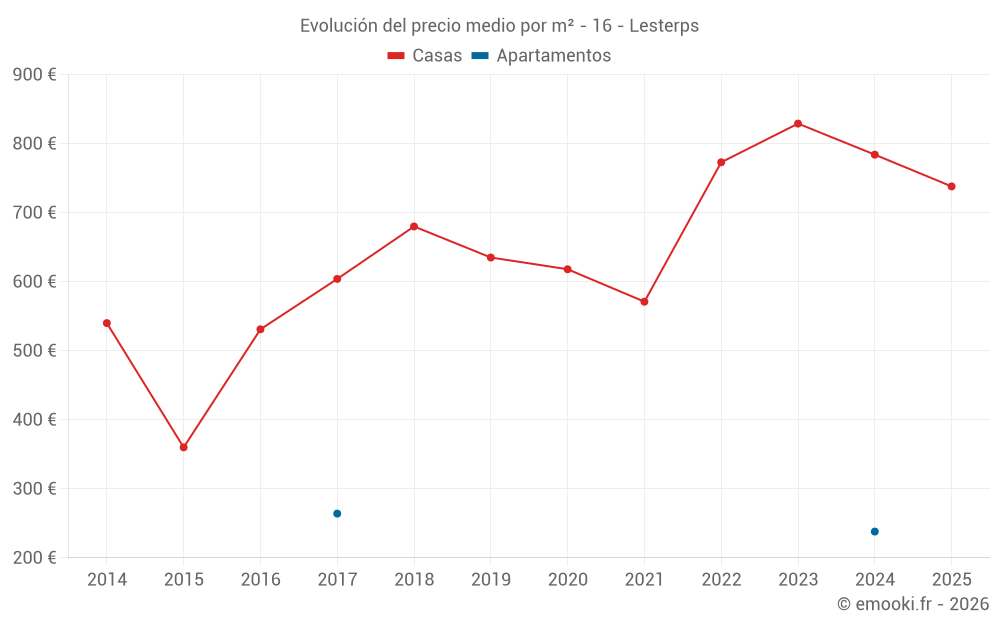 Mapa de precios de la vivienda en la comuna de Lesterps, elija una sección para ver las transacciones por parcela.