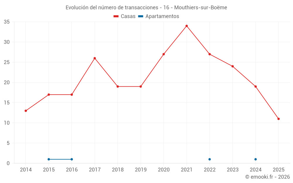 Mapa de precios de la vivienda en la comuna de Mouthiers-sur-Boëme, elija una sección para ver las transacciones por parcela.