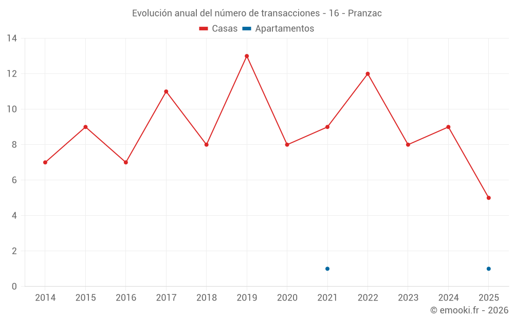El precio mediano en las 18 transacciones de casas de los últimos 24 meses en la comuna de Pranzac fue de 1 516 € por metro cuadrado para un valor patrimonial medio de 148 500 €. Durante este período el 60% de las transacciones estuvieron entre 824 y 1 967 € por metro cuadrado (del 2º al 8º decil).