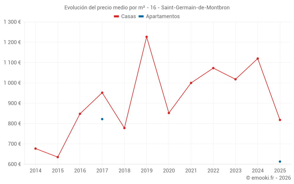 Mapa de precios de la vivienda en la comuna de Saint-Germain-de-Montbron, elija una sección para ver las transacciones por parcela.