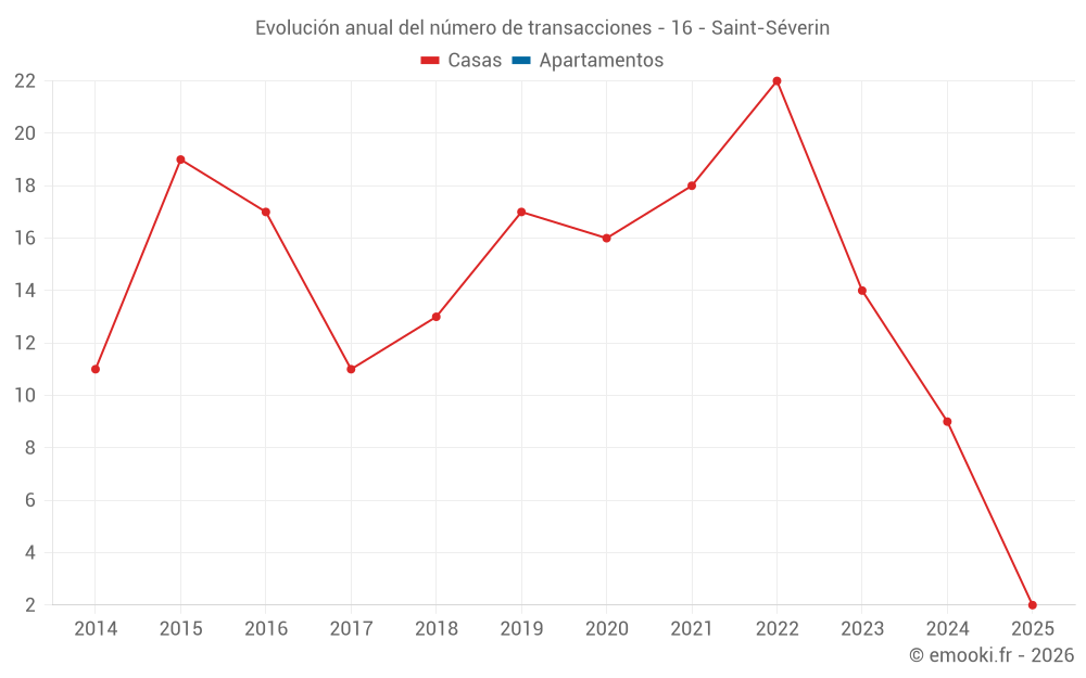 El precio mediano en las 19 transacciones de casas de los últimos 24 meses en la comuna de Saint-Séverin fue de 1 075 € por metro cuadrado para un valor patrimonial medio de 126 285 €. Durante este período el 60% de las transacciones estuvieron entre 650 y 1 573 € por metro cuadrado (del 2º al 8º decil).