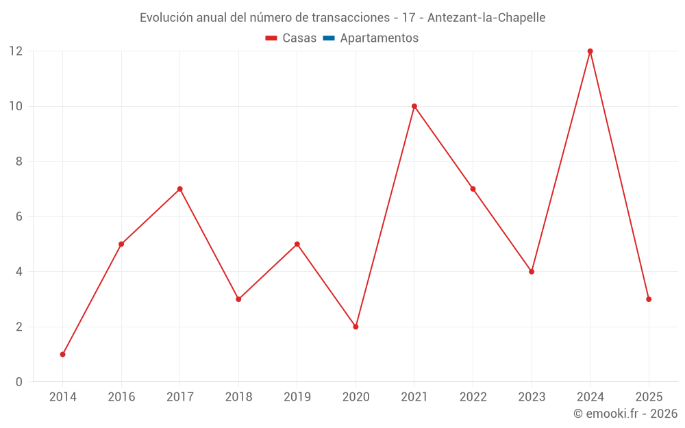 El precio mediano en las 17 transacciones de casas de los últimos 24 meses en la comuna de Antezant-la-Chapelle fue de 1 090 € por metro cuadrado para un valor patrimonial medio de 100 000 €. Durante este período el 60% de las transacciones estuvieron entre 768 y 1 461 € por metro cuadrado (del 2º al 8º decil).