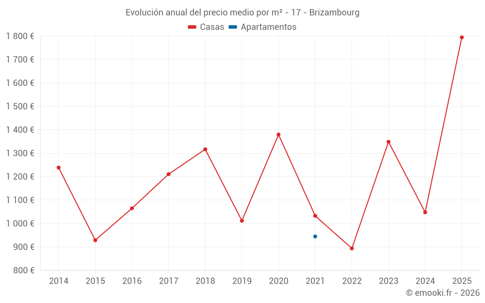Evolución del precio medio por m² de las casas