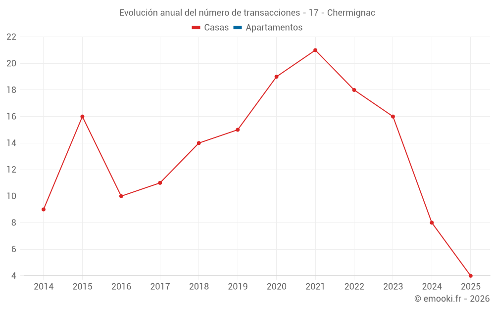 El precio mediano en las 21 transacciones de casas de los últimos 24 meses en la comuna de Chermignac fue de 2 239 € por metro cuadrado para un valor patrimonial medio de 198 600 €. Durante este período el 60% de las transacciones estuvieron entre 1 762 y 2 552 € por metro cuadrado (del 2º al 8º decil).