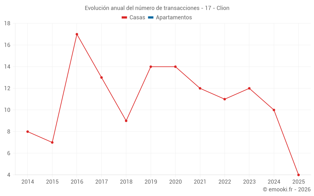 El precio mediano en las 22 transacciones de casas de los últimos 24 meses en la comuna de Clion fue de 1 472 € por metro cuadrado para un valor patrimonial medio de 138 704 €. Durante este período el 60% de las transacciones estuvieron entre 882 y 1 906 € por metro cuadrado (del 2º al 8º decil).
