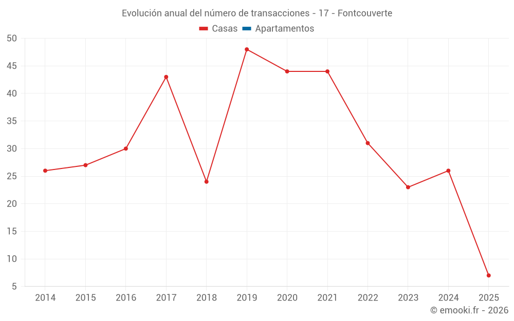 El precio mediano en las 22 transacciones de casas de los últimos 12 meses en la comuna de Fontcouverte fue de 1 894 € por metro cuadrado para un valor patrimonial medio de 170 000 €. Durante este período el 60% de las transacciones estuvieron entre 1 408 y 2 457 € por metro cuadrado (del 2º al 8º decil).