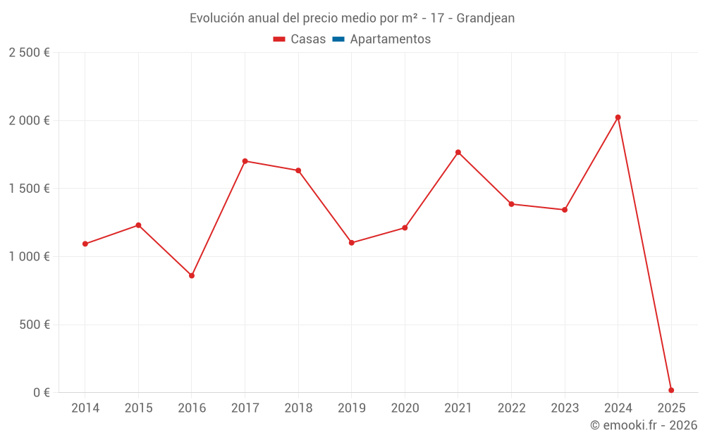 Evolución del precio medio por m² de las casas
