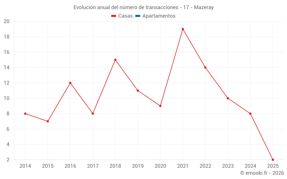 El precio mediano en las 15 transacciones de casas de los últimos 24 meses en la comuna de Mazeray fue de 1 538 € por metro cuadrado para un valor patrimonial medio de 154 000 €. Durante este período el 60% de las transacciones estuvieron entre 931 y 1 918 € por metro cuadrado (del 2º al 8º decil).