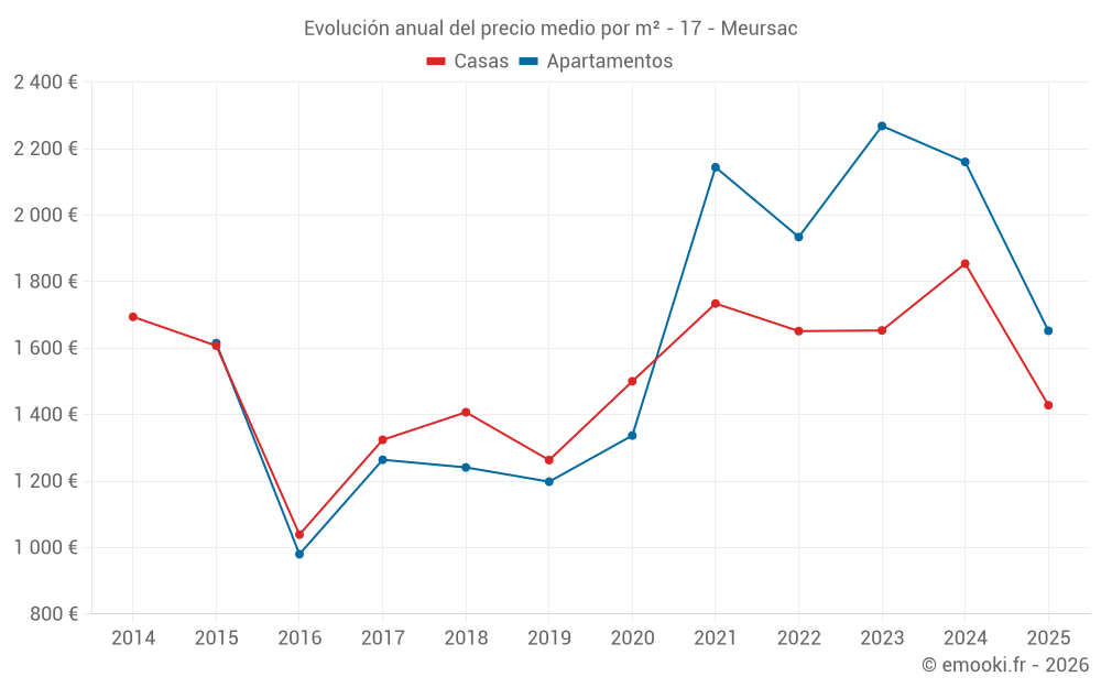 ¿Cuál es el precio por m2 de las casas en Meursac?