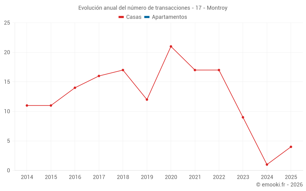 El precio por m² de las casas ha disminuido un 16% desde 3 años, pero ha aumentado un 75% en 11 años.