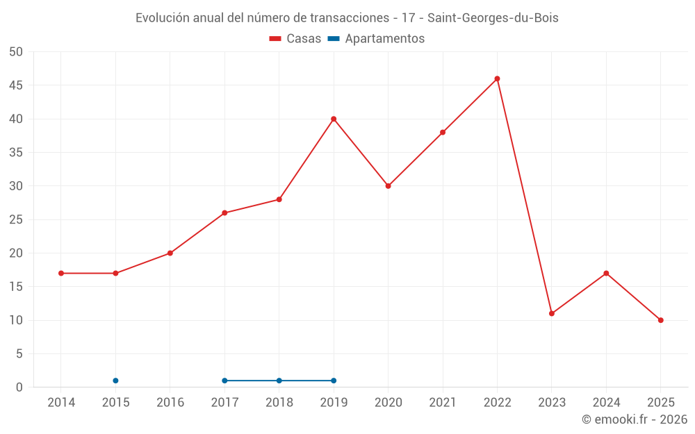 El precio mediano en las 22 transacciones de casas de los últimos 12 meses en la comuna de Saint-Georges-du-Bois fue de 1 298 € por metro cuadrado para un valor patrimonial medio de 149 000 €. Durante este período el 60% de las transacciones estuvieron entre 795 y 1 951 € por metro cuadrado (del 2º al 8º decil).