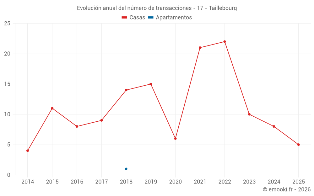 El precio mediano en las 17 transacciones de casas de los últimos 24 meses en la comuna de Taillebourg fue de 1 486 € por metro cuadrado para un valor patrimonial medio de 165 500 €. Durante este período el 60% de las transacciones estuvieron entre 988 y 2 019 € por metro cuadrado (del 2º al 8º decil).