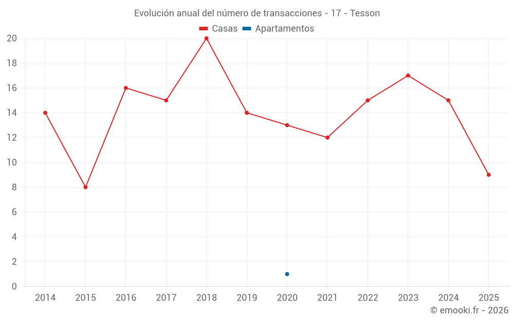 El precio mediano en las 17 transacciones de casas de los últimos 12 meses en la comuna de Tesson fue de 1 651 € por metro cuadrado para un valor patrimonial medio de 166 150 €. Durante este período el 60% de las transacciones estuvieron entre 1 036 y 2 339 € por metro cuadrado (del 2º al 8º decil).