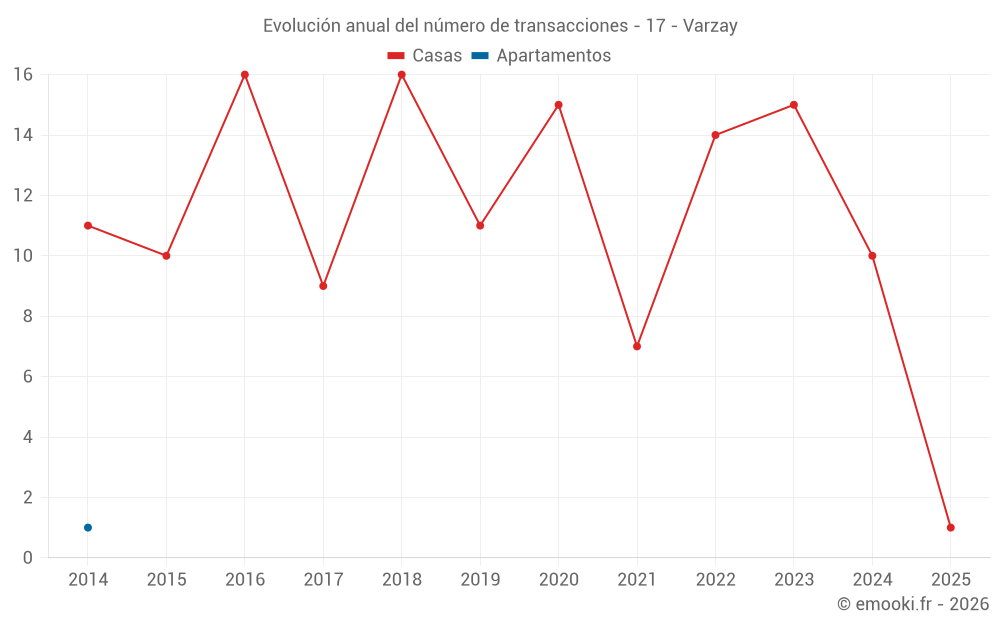 El precio mediano en las 16 transacciones de casas de los últimos 24 meses en la comuna de Varzay fue de 1 860 € por metro cuadrado para un valor patrimonial medio de 172 050 €. Durante este período el 60% de las transacciones estuvieron entre 1 079 y 2 111 € por metro cuadrado (del 2º al 8º decil).