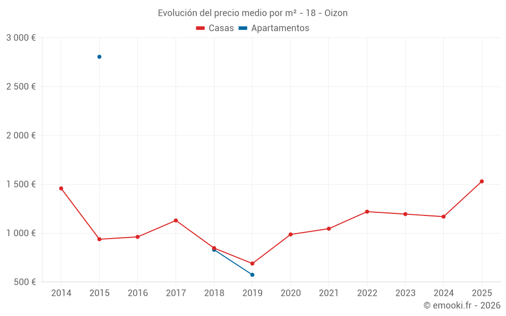 Mapa de precios de la vivienda en la comuna de Oizon, elija una sección para ver las transacciones por parcela.