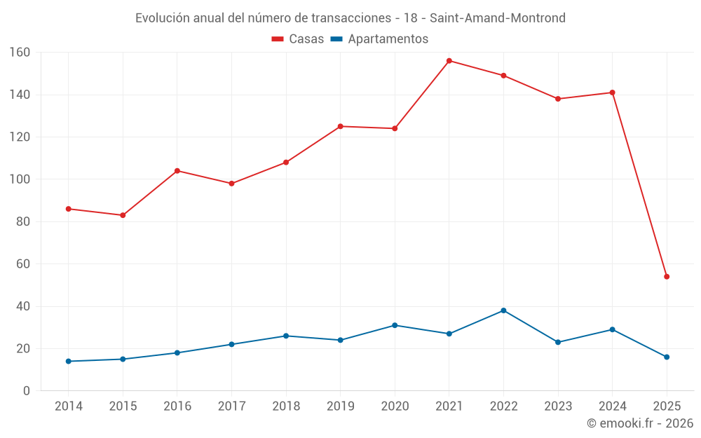 El precio mediano en las 24 transacciones de casas de los últimos 3 meses en la comuna de Saint-Amand-Montrond fue de 1 116 € por metro cuadrado para un valor patrimonial medio de 97 500 €. Durante este período el 60% de las transacciones estuvieron entre 799 y 1 535 € por metro cuadrado (del 2º al 8º decil).