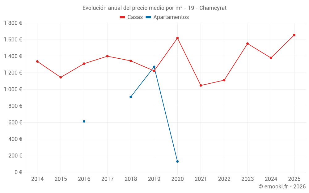 ¿Cuál es el precio por m2 de las casas en Chameyrat?