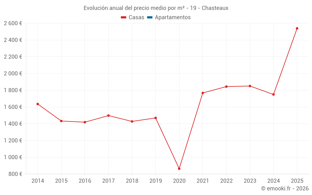 ¿Cuál es el precio por m2 de las casas en Chasteaux?