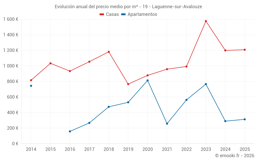 ¿Cuál es el precio por m2 de las casas en Laguenne-sur-Avalouze?