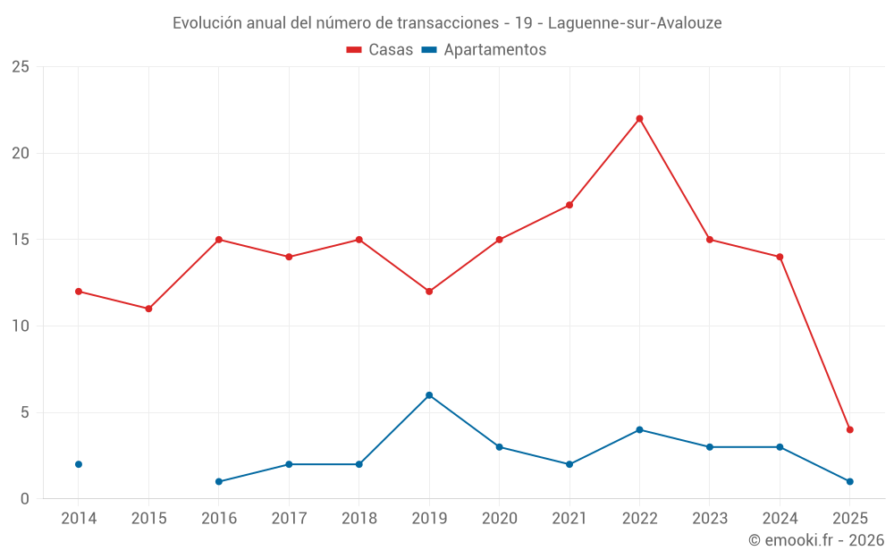 El precio mediano en las 26 transacciones de casas de los últimos 24 meses en la comuna de Laguenne-sur-Avalouze fue de 1 286 € por metro cuadrado para un valor patrimonial medio de 117 150 €. Durante este período el 60% de las transacciones estuvieron entre 920 y 1 760 € por metro cuadrado (del 2º al 8º decil).