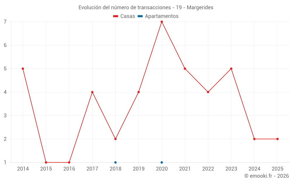 Mapa de precios de la vivienda en la comuna de Margerides, elija una sección para ver las transacciones por parcela.