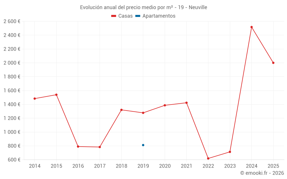 Evolución del precio medio por m² de las casas