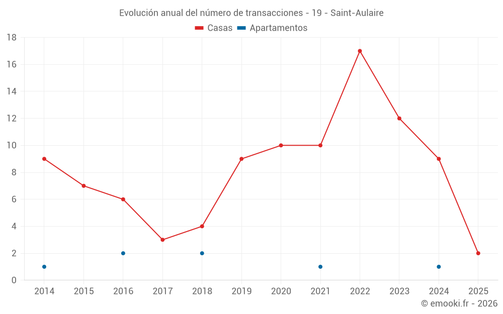 El precio mediano en las 16 transacciones de casas de los últimos 24 meses en la comuna de Saint-Aulaire fue de 1 387 € por metro cuadrado para un valor patrimonial medio de 134 500 €. Durante este período el 60% de las transacciones estuvieron entre 667 y 1 739 € por metro cuadrado (del 2º al 8º decil).