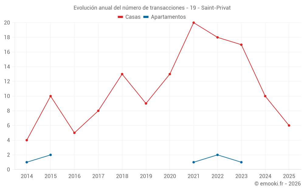El precio mediano en las 26 transacciones de casas de los últimos 24 meses en la comuna de Saint-Privat fue de 1 089 € por metro cuadrado para un valor patrimonial medio de 98 275 €. Durante este período el 60% de las transacciones estuvieron entre 817 y 1 573 € por metro cuadrado (del 2º al 8º decil).