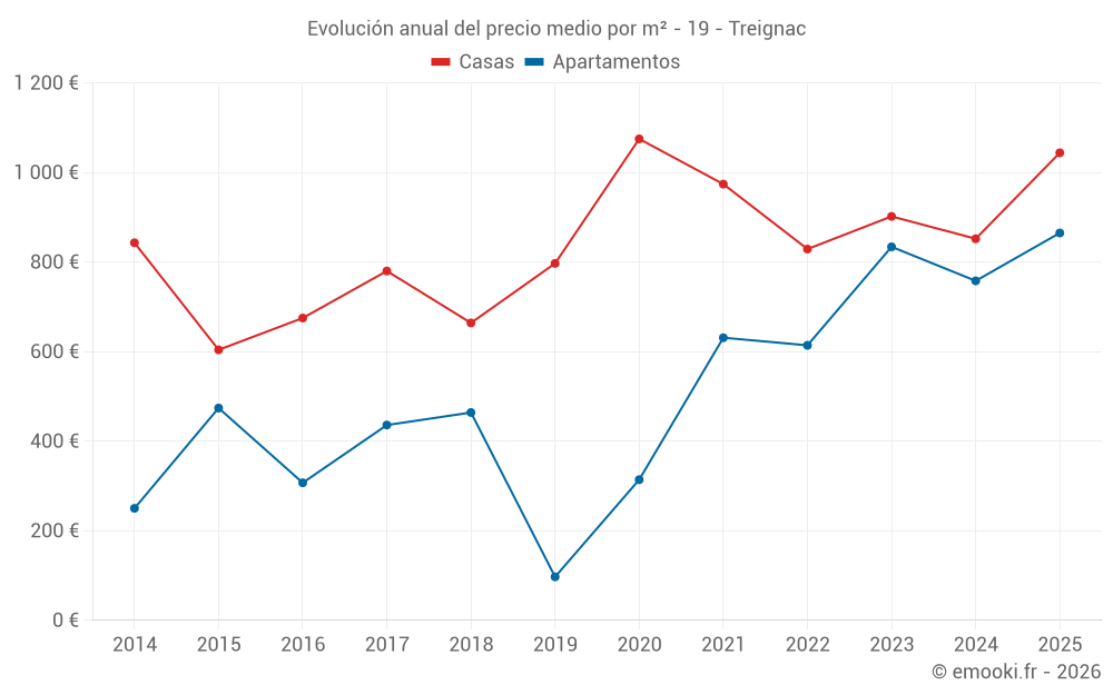 ¿Cuál es el precio por m2 de las casas en Treignac?