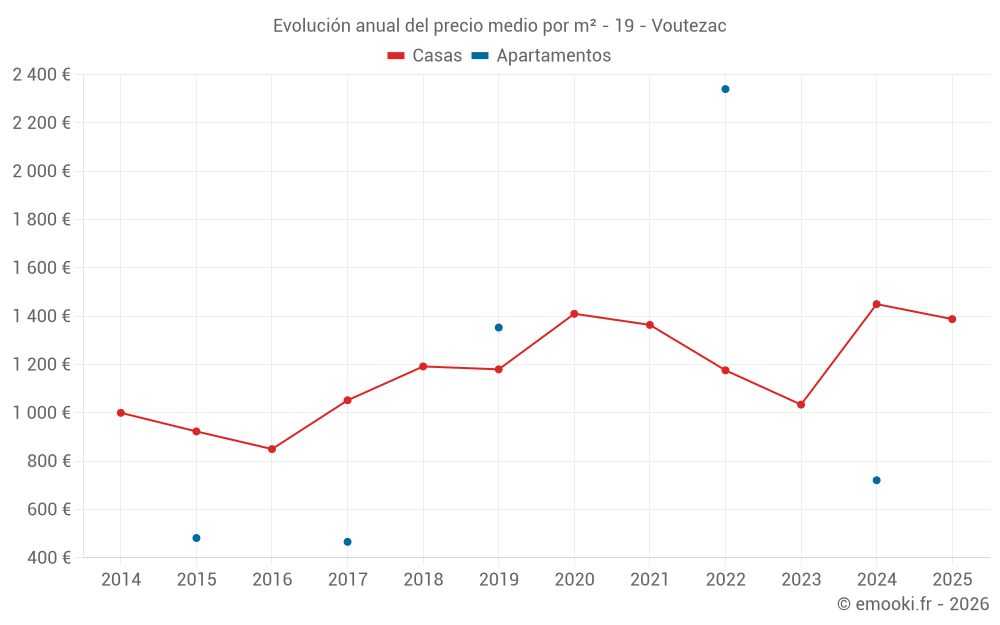 ¿Cuál es el precio por m2 de las casas en Voutezac?
