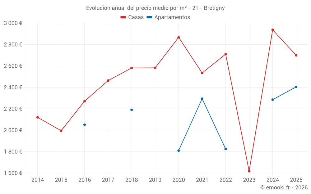 ¿Cuál es el precio por m2 de las casas en Bretigny?