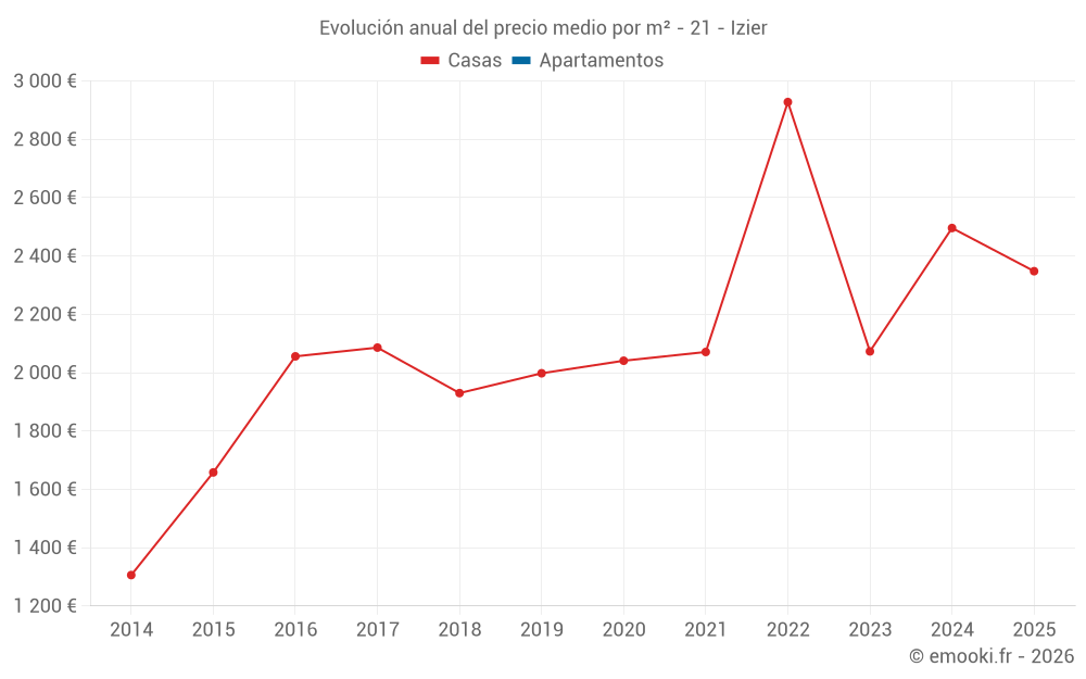 El precio por m² de las casas ha disminuido un 5.9% desde 1 año, pero ha aumentado un 42% en 10 años.